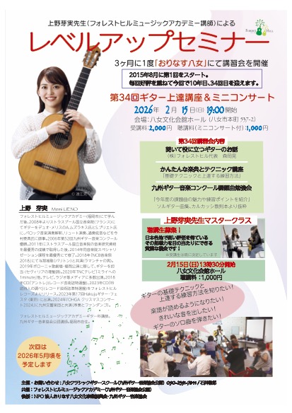 ❖ 上野芽実レベルアップセミナー 第34回ギター上達講座&ミニコンサート ※関連行事