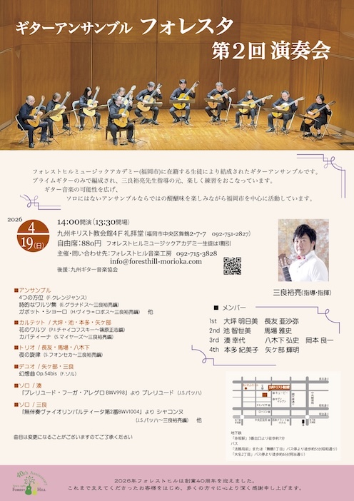 HOME > コンサート・イベント情報2026年 >ギターアンサンブル フォレスタ 第2回演奏会